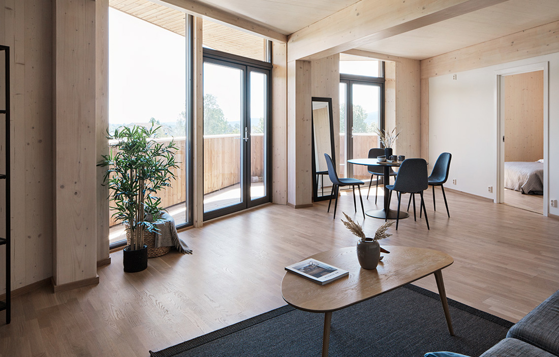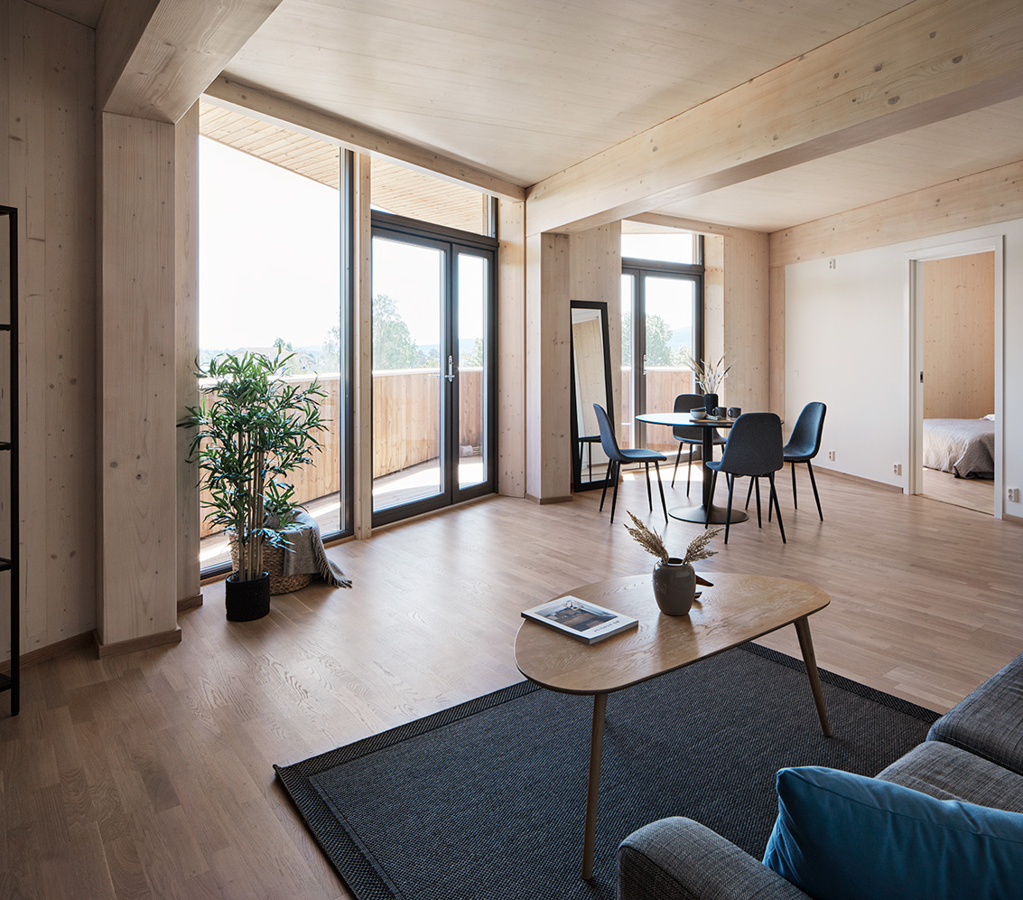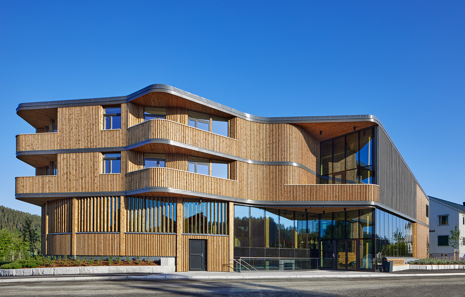 Övervägande delen av byggnaden är skapad av trä, både för att dra nytta av materialets taktila egenskaper och för att återspegla det norska kulturarvet.