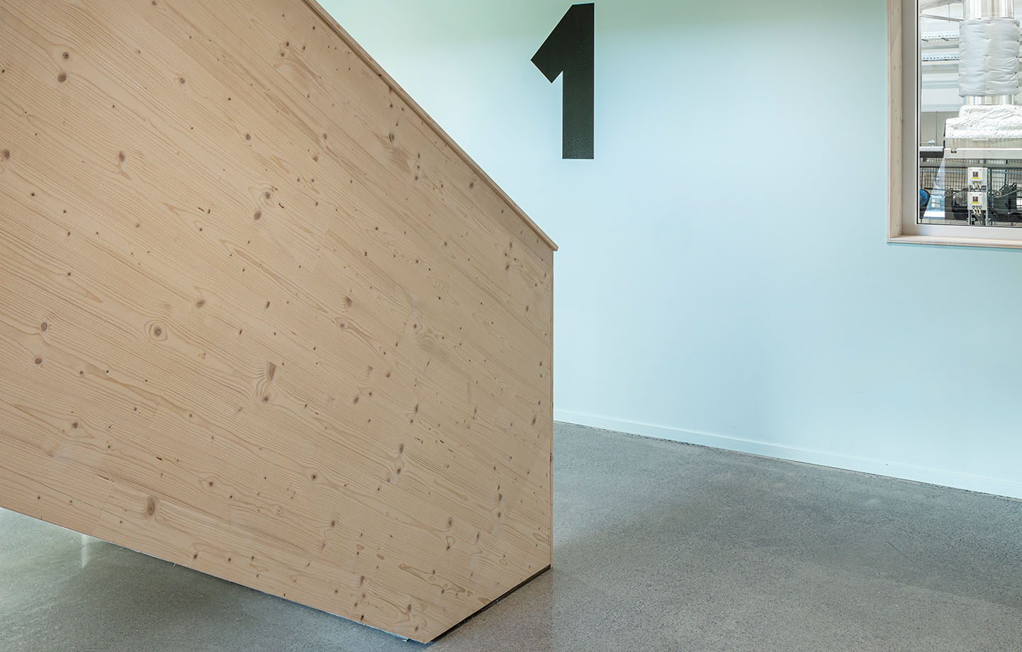 Däremot behölls tillbyggnadens huvudkaraktär med reliefmönster och fyrkantiga fönster. Att bygga en ny träbyggnad mot en befintlig i betong och tegel innebar vissa utmaningar. Dels för att få det att stämma med konstruktionen, dels att få tätt mellan materiallagren för att fuktsäkra byggnaden. Huset certifieras som Miljöbyggnad Silver, vilket gör den till något av en förebild för hållbart industribyggande.